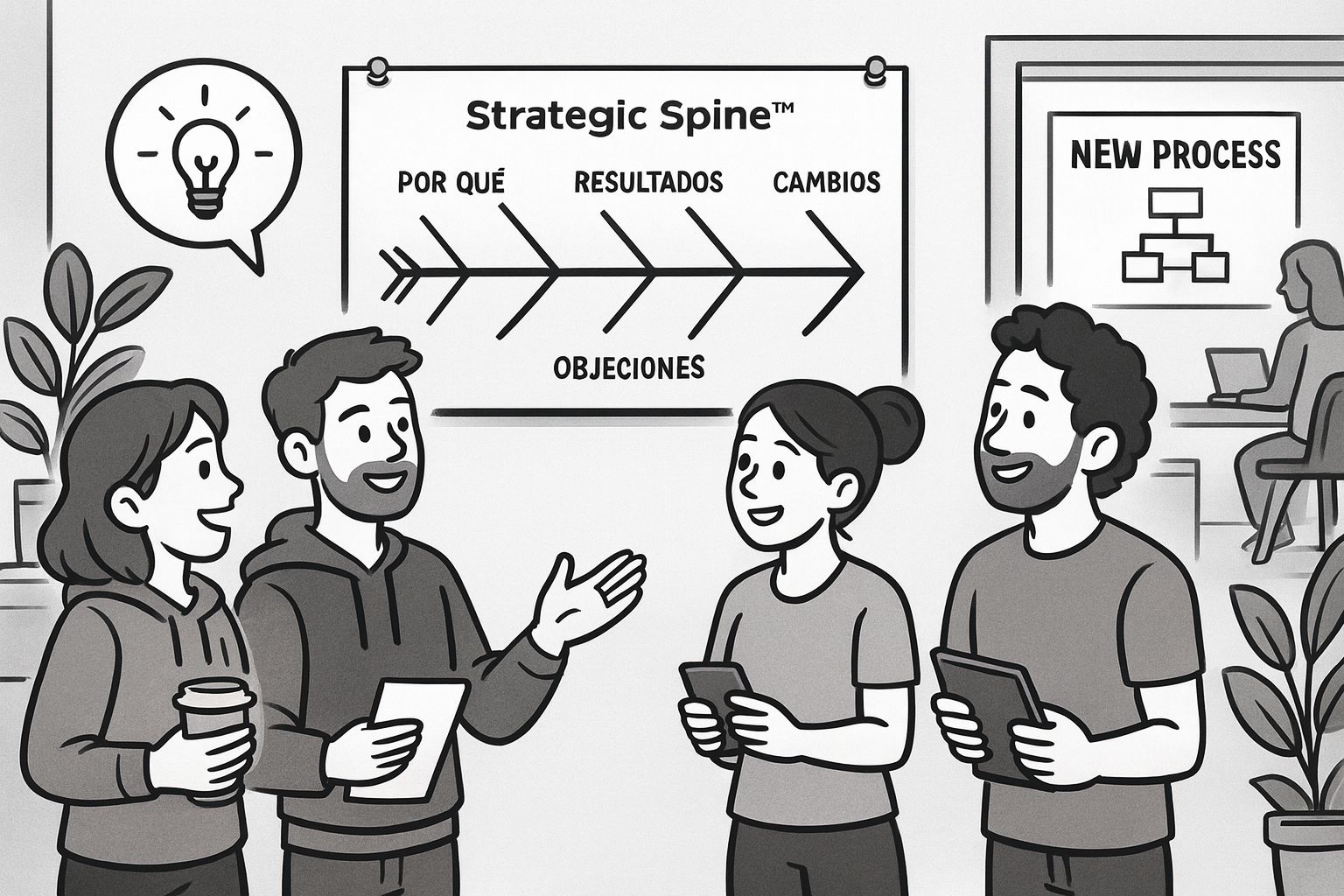 Empezó por el “por qué”, conectado con dolores reales del equipo. Errores que les obligaban a rehacer trabajo porque no se estaba aplicando aún el nuevo proceso: necesitaban entender que les interesaba mucho que aplicar la nueva solución.
